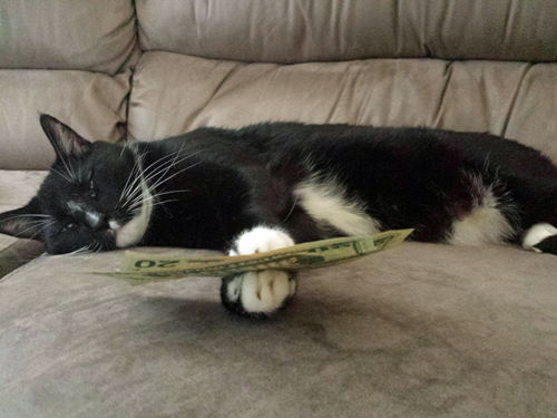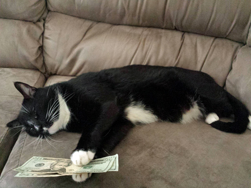 Meatloaf is a reliable cat and did not steal the money for selfish reasons. A rare friend.