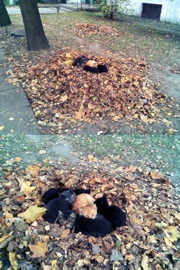 The black cats are witches that summoned their pumpkin friend for a cuddle party