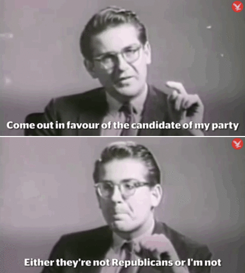 That’s actor and Republican Bill Bogert talking about GOP presidential candidate Barry Goldwater in 1964. Sound familiar? He’s making the exact arguments many have made about Donald Trump. The ad is currently going viral for that very reason — but the odd similarities between Goldwater and Trump don’t end there.