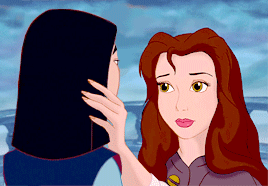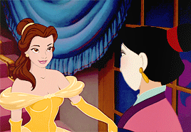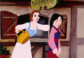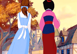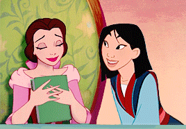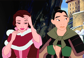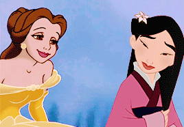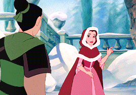 Disney AU : Belle falls in love with Ping and Mulan, and eventually realizes that they’re the same person. (please click the gifs to read captions)