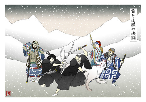 This is officially my new favorite thing. The meticulous thought behind each woodblock print has me reeling with joy. For example, the three kanji on the Mountain’s armor are the character for inu, “dog.” Eddard Stark has been forced to commit seppuku, and has in front of him his death poem, as an honorable samurai would have written. The wildlings are dressed as Ainu, the indigenous people of northern Japan.