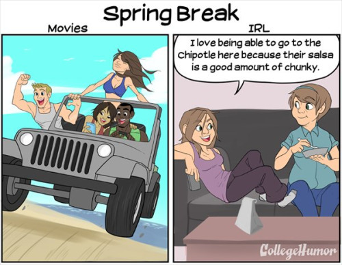 And when I got to college and it DIDN’T happen, it stressed me out. I thought I was doing something wrong again. I had, apparently, messed up high school according to the media, and now college?! The supposed best time of my life?! It created a big depression, and living far from home made it worse as I had no friends or family I could immediately talk to. It took a long time for me to understand that movies and commercials and shows that portray college like that is complete and utter bullshit.