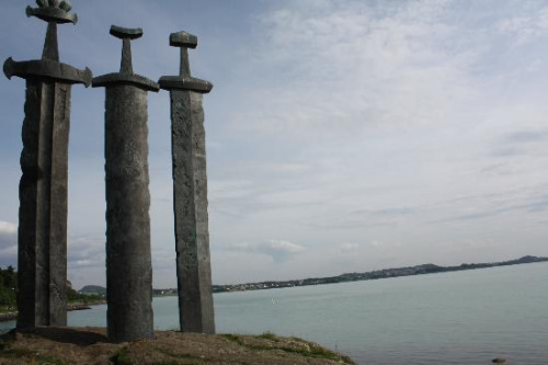 Giant Sword monument in Norway called Sverd i fjell. They commemorate the historic Battle of Hafrsfjord that took place there in the year 872