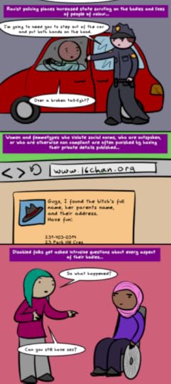 Privacy and surveillance are pet topics of mine both personally and professionally and I keep trying to figure out ways to contextualize them in accessible ways. Privacy as consent is a framework that works really well to break down ideas that things Should or Can’t be ‘private’ and that different people will make different decisions about their own privacy!