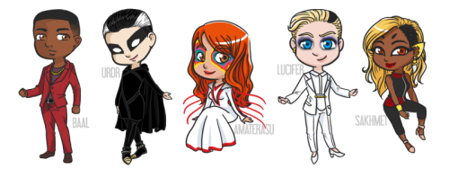 so i wanted to draw cool clothes on chibis so naturally i decided to go for the wicdiv pantheon (because teenage gods aw yes). Took me three days ~phew!