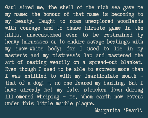 Epitaph on a grave for a beloved family dog, owners and dedicators unknown. 2nd or 3rd century Rome.