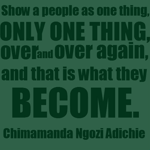 2. Show a people as one thing, only one thing,over and over again, and that is what they become.