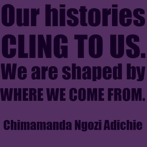 [A series of quotes from author Chimamanda Ngozi Adichie on colored squares with certain words enlarged for emphasis.