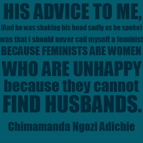 6. His advice to me (and he was shaking his head sadly as he spoke) was that I should never call myself a feminist because feminists are women who are unhappy because they cannot find husbands.