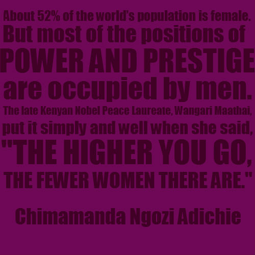 8. About 52% of the world’s population are women. But most of the positions of power and prestige are occupied by men. The late Kenyan Nobel Peace Laureate Wangari Maathai put it simply and well when she said, “The higher you go, the fewer women there are.”