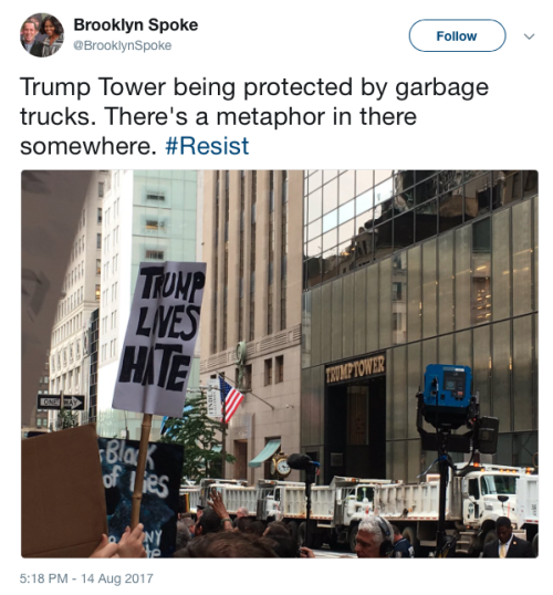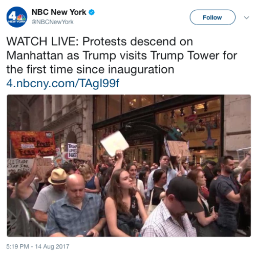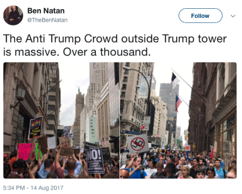 But for the thousands of people who showed up outside Trump Tower in New York City on Monday evening to protest, the president’s words were a bucket of ice water on a violent blaze in America that was left to burn out of control for far too long. Read more (8/14/17 6 PM)