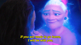 Instead, Gramma waits until Moana herself realizes that she’s not ready to give up, through self reflection. She wasn’t there to insist that Moana “suck it up”, but simply to “remind [her] that come what may, [she] know[s] the way”.