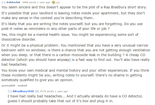 this is so wild, this guy thought his landlord was going into his house and leaving him post-it notes but he just had an extreme case of carbon monoxide poisoning