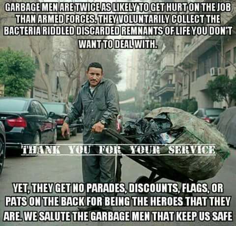 My dad told me recently that the most important public health workers are garbage collectors and janitors. So much of our health relies on a clean environment. These people do some of the most important work in society. If we learned in dirty public environments full of garbage, we’d all be sick. I cannot thank these people enough for the valuable work that they do.
