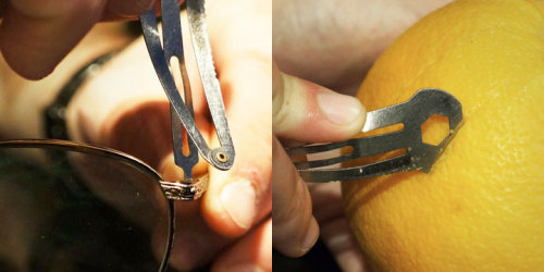 The Leatherdos is a hair clip that doubles as a multi-tool that combines 5 different tools in a tiny hair clip: screw-drivers, a wrench, a trolley coin, a ruler, and a cutting edge.