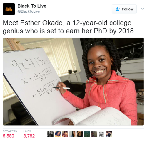 This 13-year-old British-Nigerian girl is completely genius. Esther was only 10 when she enrolled at the Open university, which is a UK-based distance learning college, and was one of the best students here. Can you even imagine having a degree in 14? I can’t. But this brilliant Black kid with