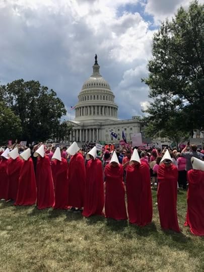 Handmaids are outside the U.S. Capitol today, making a chilling statement about the GOP healthcare bill’s attacks on women’s reproductive health and bodily autonomy.