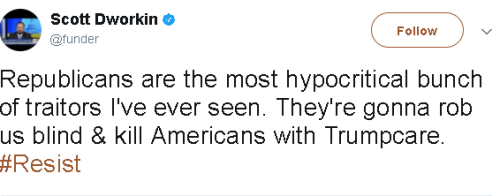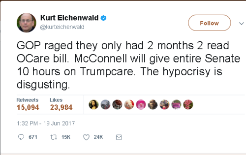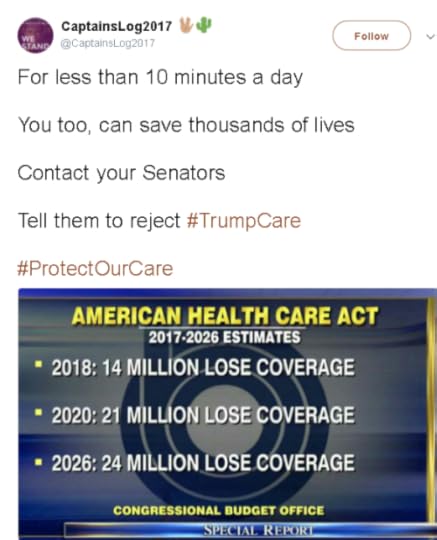 The anti-depressants and anti-anxiety medications I take are literally (and I am using this word correctly) keeping me alive at this point in my life. If Trumpcare goes through, it will mean my death, unless I can find a way to come up with $2250 a month to pay for my medications, because with Trump’s health care plan, even if I were able to get a full-time job with a health insurance package, my employer’s insurance could deny me benefits due to my pre-existing conditions.
