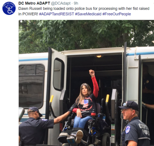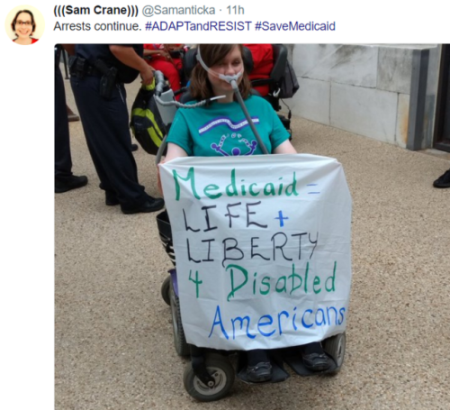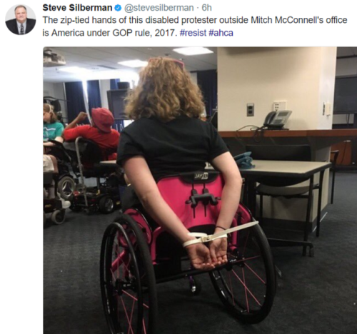 Disability advocates arrested during health care protest at McConnell’s office. Thank you for risking your lives #cripplepunk