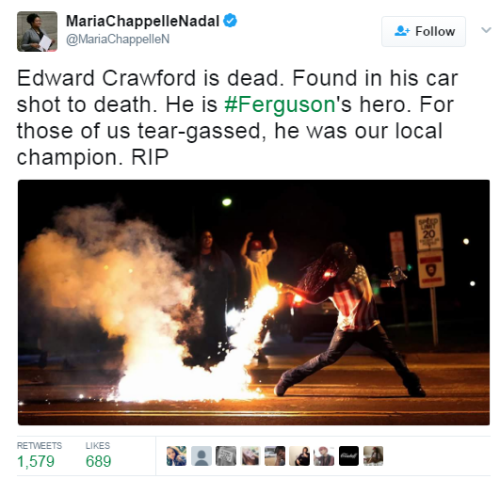 Goddamn. http://www.teenvogue.com/story/ferguson-protestor-edward-crawford-dead