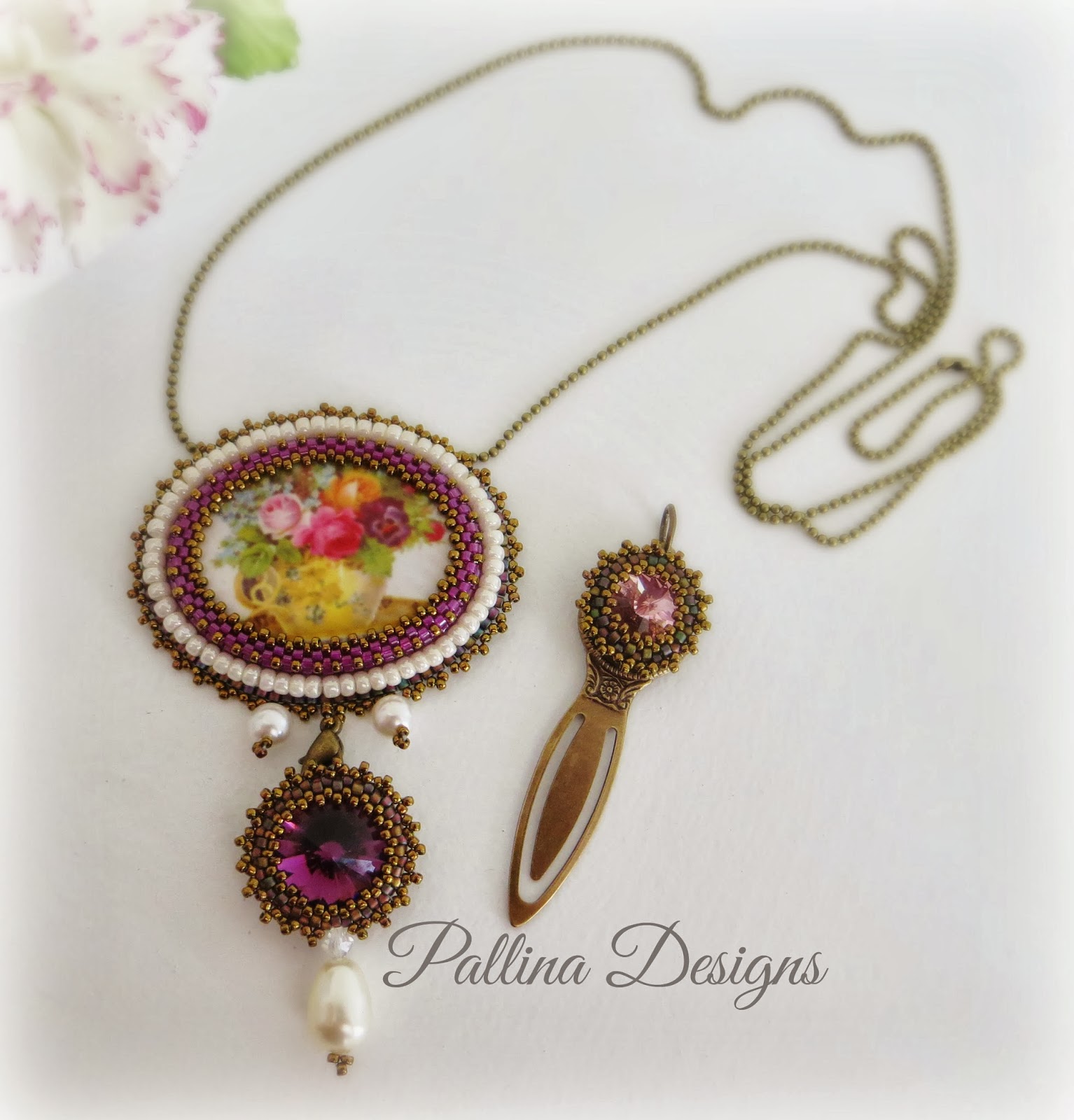 I also finished beading this necklace, featuring a removable bookmark that's interchangeable with another pendant (that's book-related right? Right?).