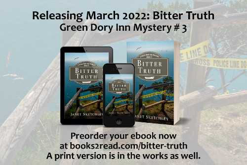 Happy “book birthday” to the newest Green Dory Inn Mystery, Bitter Truth! The paperback version sneaked onto the scene early, and now the ebooks are live too.