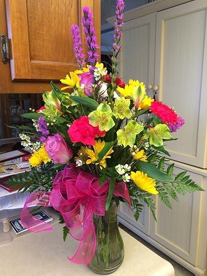 Thank you, Sir!You know how much I love pretty spring flowers.I got a huge bouquet of flowers yesterday. When I called Sir to thank him, he said they wanted to know if they could deliver it on Friday because Saturday was going to be so heavy. In our household, the holiday is whenever everyone can be together, so dates don’t hold a lot of importance, and he told them sure, deliver away. One extra day for me to enjoy them. How awful can that be?