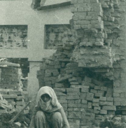 Our watery route passed the pathetic sights of collapsed mud houses, yawning telephone poles, and drowned sugar cane. The water stank of rotting grain and sewage. Here and there we passed the bloated carcasses of dead animals. As we entered the town, we saw that whole sections of the huge canal that circled Khanpur had been breached. The cuts in the fifteen-foot high canal bank looked as if they had been ruptured by a bull dozer. Two-thirds of this town of 70,000 lay in ruins.