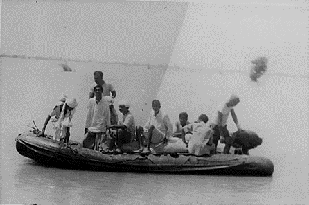 They were a great bunch of Green Berets from the US south. They had never seen destruction on this scale before. But they expressed great frustration over delays, lack of co-ordination, and how the VIPs and rich landlords had been taking advantage of their services. As a change, they were glad to take us out to survey the conditions of the poorer folk. With one of the Marwari believers, they ferried us three miles through drowned fields, protruding date palms, and submerged mango trees to Pattan Minara.