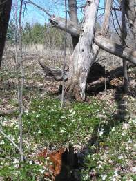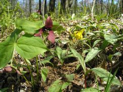 touch the dead fields and naked trees. Flowery pendants hang from aspens and soft maples. Rainbow trout fight their way up the Ganaraska to hurl themselves at the fish ladder. A rose-breasted grosbeak visits our feeder. Robin and Robinette ferry straw to their secret nest. All the signs point to wildflower week. The time had come to cancel appointments and head outdoors.