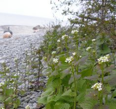 Although the beach seemed sterile and inhospitable, I was amazed to find a flowering plant rooted in the pebbles along the shore. How, I wondered, could it survive in such a barren location?
