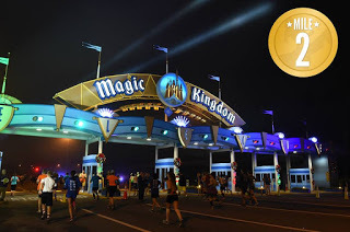As we approached the first massive ascent, however, I could feel my bad knee (snowboarding injury from years ago) inflame and my recent injury from the fall was becoming quite noticeable. Still, I pushed through and mile two quickly became mile four. Approaching Magic Kingdom filled me with excitement and anticipation of seeing the castle, running the park before opening and all of the magic that awaited.