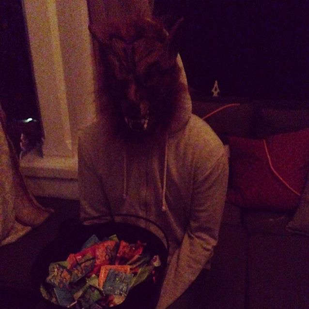 -Get a skull or mask and place it over the top of the lamp stand, so that it covers the hanger. And there is your super cool and super creepy standing figure!