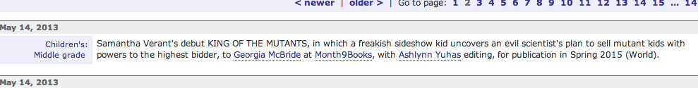 Then, I pulled the trigger again. In a crazy twist of events, I ended up selling my middle grade novel, KING OF THE MUTANTS, to Month9Books. Two weeks later, I was contacted by Sourcebooks, alerting me that they were impressed by my proposal and wanted to see the full.