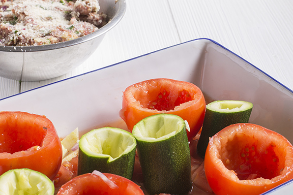 Tomates et Courgettes Farcies (Stuffed Tomatoes and Zucchini)Preparation Time: 15 minutes