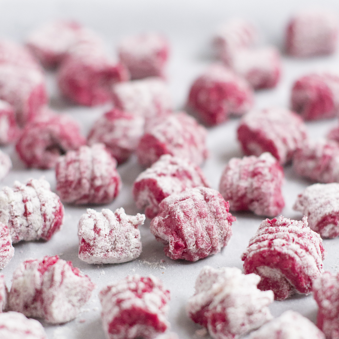 Note: the gnocchi can be prepared in advance and will keep frozen. So get thee a beet gnocchi making!