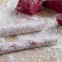 Mmmm–beets! And homemade gnocchi! I love both! This recipe is a bit different, though, as the gnocchi isn't potato-based. And it's good. Of course, with gnocchi- the sauce is up to you, but I'm also including one that is yummy. Beets go well with walnuts and a nice stinky cheese...