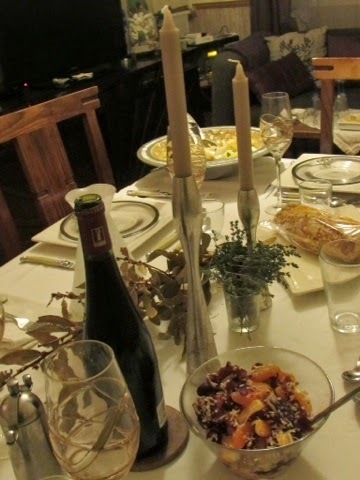 The table. And a glimpse of my cranberry, coconut. and clementine orange 'sauce.'