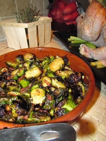 Carmelized Brussell Sprouts w/ Lardons, Shallots, and a balsamic glaze.