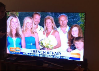 For those in Australia, Seven Letters was featured on the weekend edition of the Today Show, meaning I was on the show, too – filmed right here in a studio in Toulouse via satellite. They could see me. I couldn't see them. And I didn't realize how nervous I was until the taping was over. It was truly a new experience. I didn't see the segment, but one of my sister's friend's in Oz took the below picture of her television set and posted it on Facebook. (She said I did great, but who knows???)