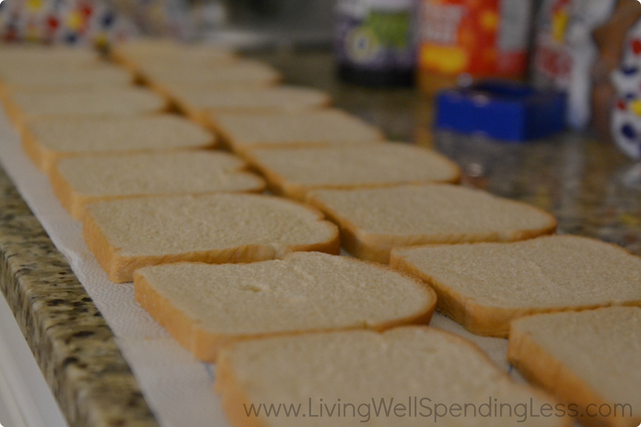 1:30 - Turn on oven; prep Breakfast Cupcakes using instructions found HERE, using the bread crusts leftover from sandwiches for the base.