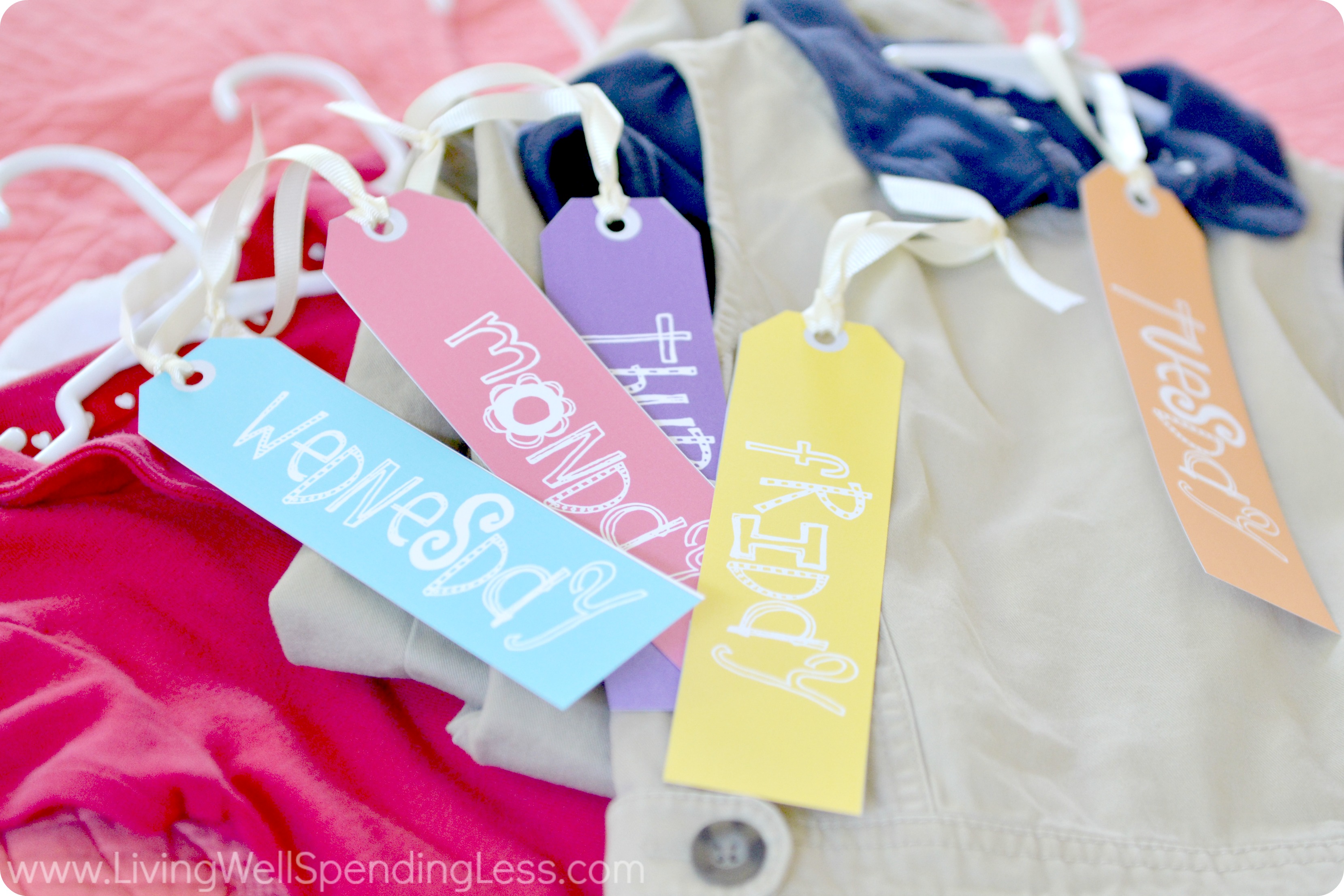 Weekday Outfit Hanger Tags (one set for each family member!)