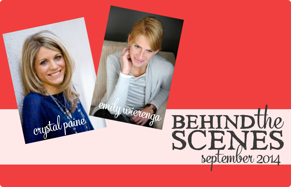 Catch Behind the Scenes interviews with Emily Wierenga , author of five books, including her new memoir Atlas Girl, and Crystal Paine , author of Say Goodbye to Survival Mode and founder of the hugely popular website, MoneySavingMom.com.
