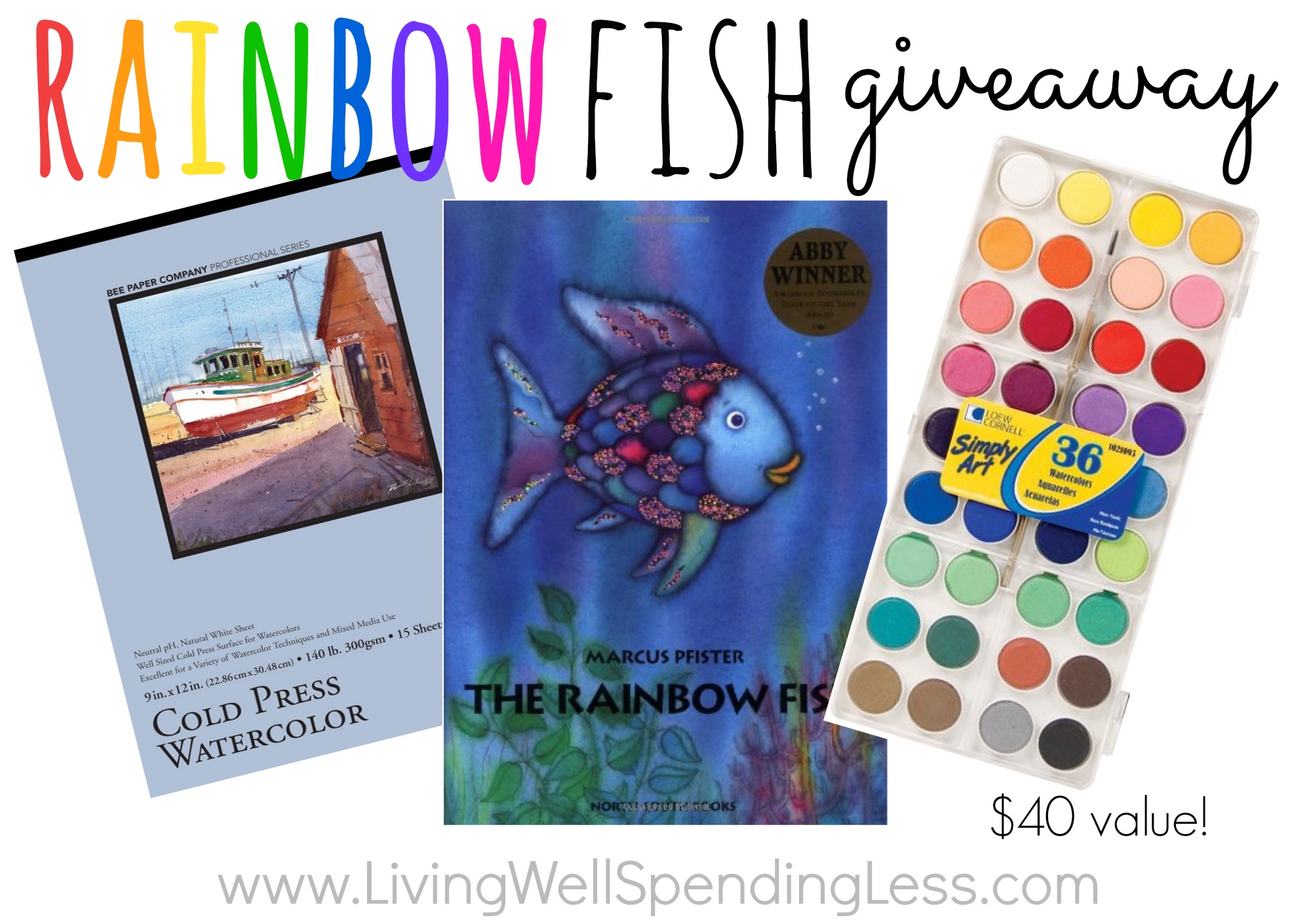 And now for the giveaway! THREE lucky readers will win a Rainbow Fish Puppet package that includes a set of watercolor paint, watercolor paper, and a hardcover version of the Rainbow Fish book. This fun package has a retail value of almost $40 and will provide hours of fun this summer! To enter, just follow the instructions in the box below.