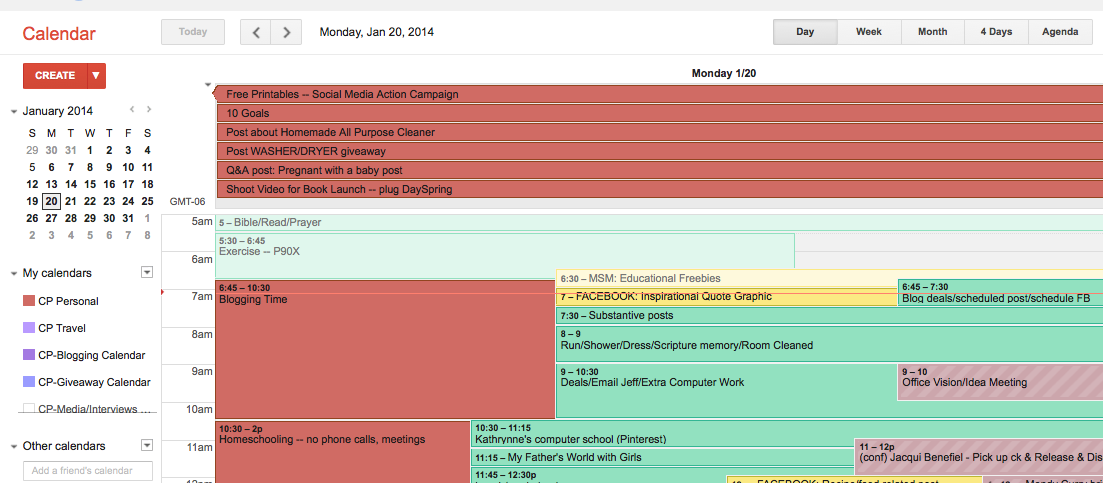 Do you use Google Calendar? What other ideas do you have for keeping track of your schedule and your life?