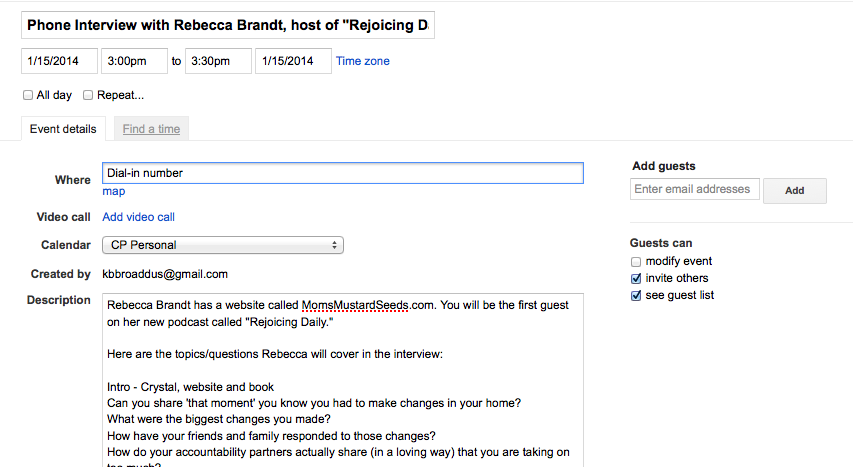 And I am so very glad I did, because using Google Calendar has revolutionized my life and my productivity. In fact, in spite of the fact that I’m usually the non-techie person, I continually catch myself championing Google Calendar to my friends and family!
