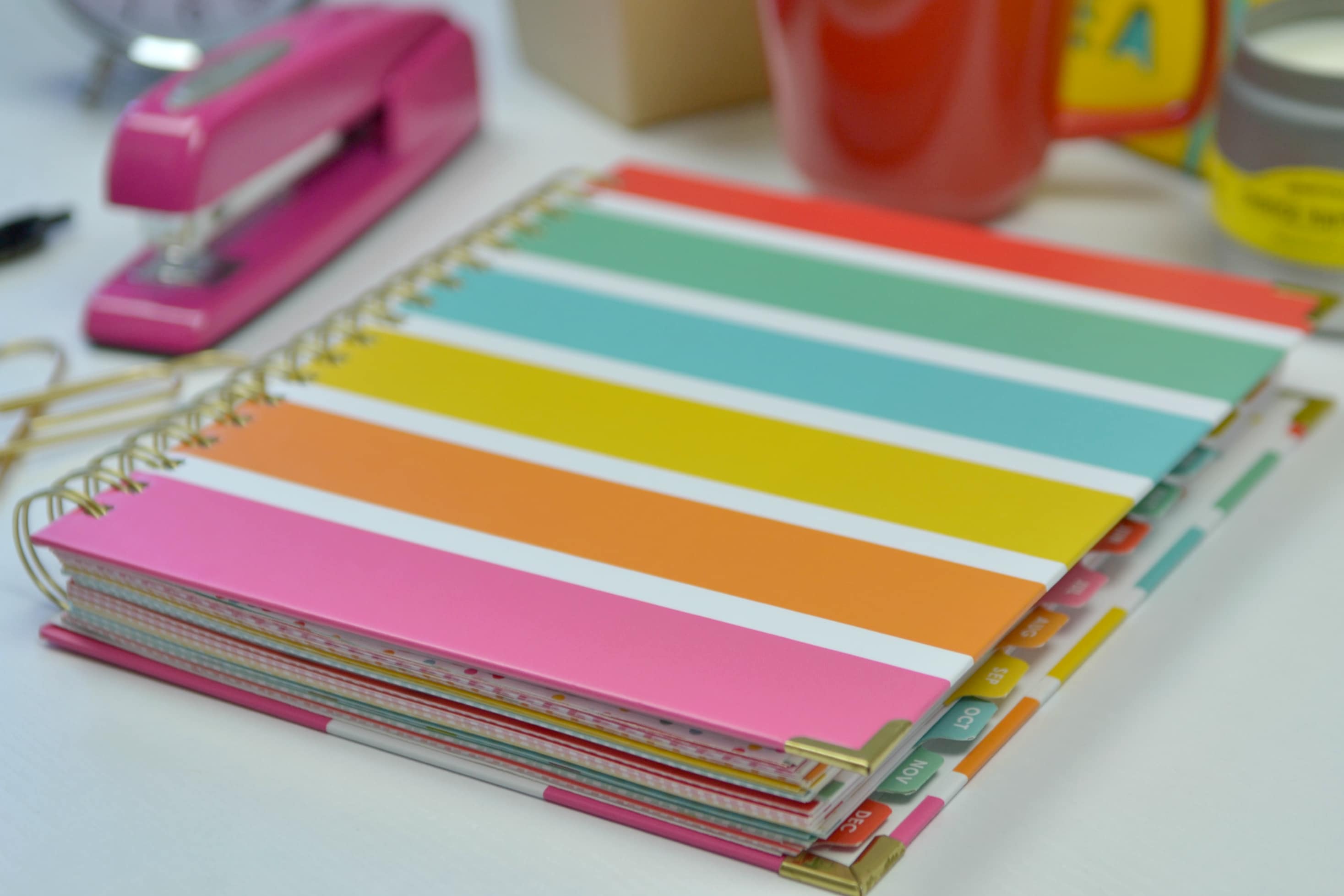 REIMAGINED COVER: A simple, bright & cheery stripe pattern with a durable eggshell finish, along with reinforced metal corners will help keep your planner safe all year long.