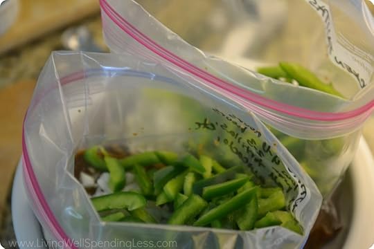 Step 6: Divide onions & green peppers and add to each bag. Freeze.