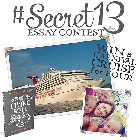 Next, to be entered into the #Secret13 Essay Contest, simply send a copy of your essay to secret13@livingwellspendingless.com. Be sure to include your name and contact information!