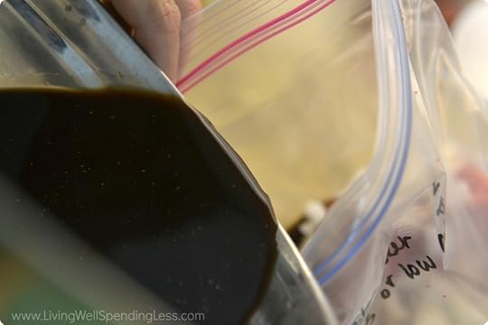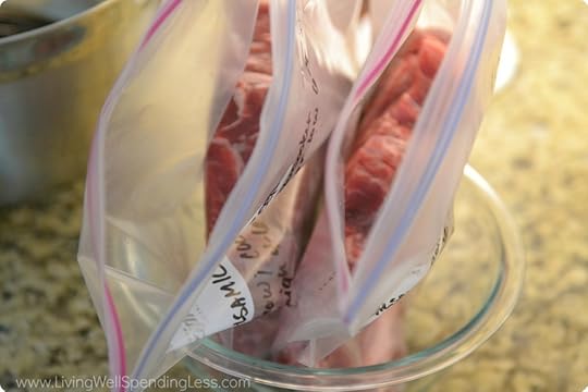 Step 3: Place each roast in a 1 gallon freezer bag. (Be sure to label freezer bag first!)